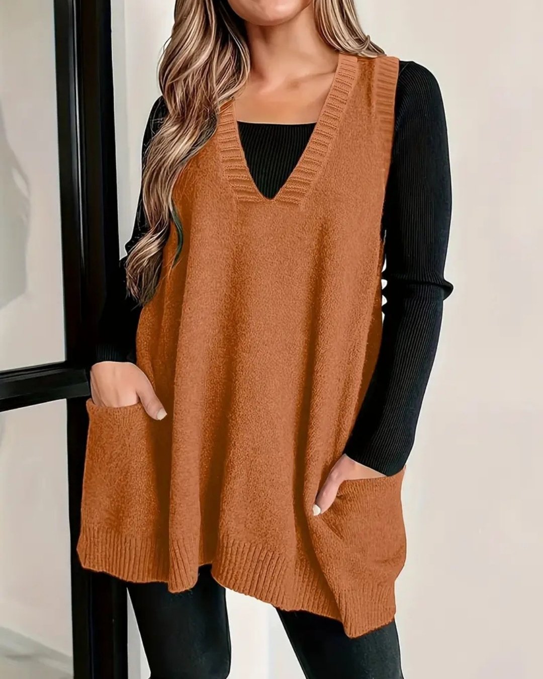 Cosy, versatile, and effortlessly elegant. The Helen Knit Vest is the perfect layering piece for transitional seasons – easy to style, flattering to wear, and made for everyday comfort. With its soft stretch knit, deep V-neckline, and practical front pockets, it brings both charm and functionality to your wardrobe.